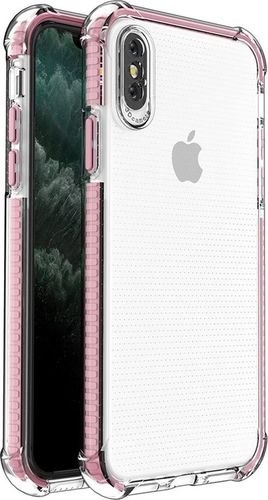 Hurtel Spring Armor żelowy elastyczny pancerny pokrowiec z kolorową ramką do iPhone XS / iPhone X różowy
