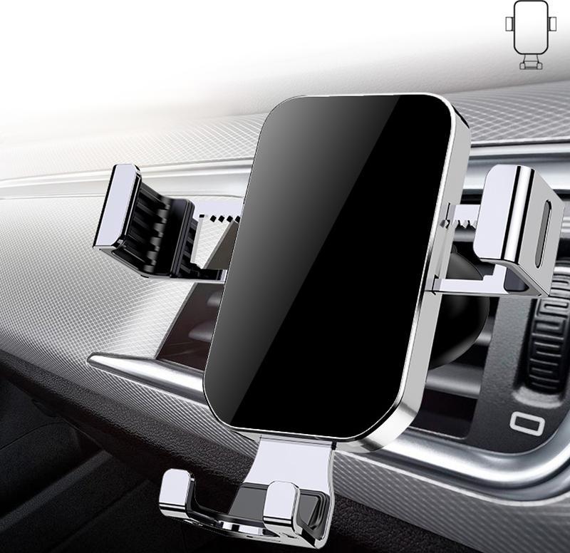 Konstrukcja tego typu uchwytów wykorzystuje zjawisko grawitacji, dzięki któremu zaciski zamykają się automatycznie, pod wpływem ciężkości włożonego do niego telefonu. Ramię uchwytu na którym opiera się smartfon, wprawia w ruch pozostałe, powodując ich zaciśnięcie. Uchwyt grawitacyjny zapewnia przede wszystkim szybki i łatwy montaż urządzenia jedną ręką, a także niezwykłą stabilność chwytu, nawet na najbardziej wymagających drogach.