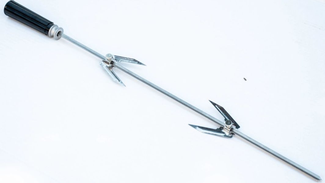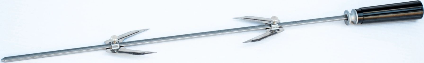 Rożen wyposażony jest w 2 uchwyty- widelce, których odległość można regulować za pomocą śrub