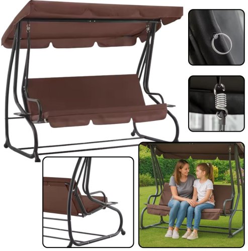 Huśtawka wyróżnia się eleganckim i nowoczesnym designem, który doskonale wpasuje się w każdy ogród, taras czy patio. Jej brązowy kolor sprawia, że jest uniwersalnym wyborem, który doda uroku każdemu otoczeniu.