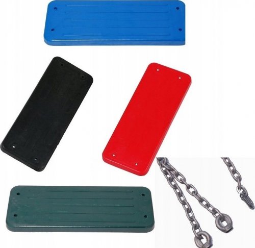 W zestawie są łańcuchy o długości 1,8 m, do zawieszenia huśtawki, ocynkowane 5 mm. Ocynkowanie łańcuchów zabezpiecza je przed korozją.