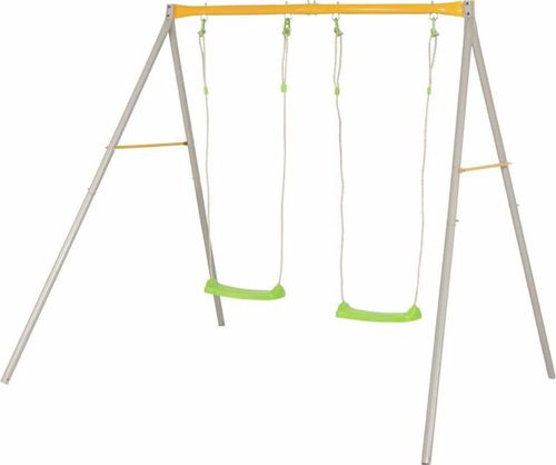 Zestaw huśtawek DUETTO firmy TRIGANO będzie ulubionym miejscem zabaw! Dzięki stalowej ramie i wytrzymałym plastikowym siedzeniom zestaw ten jest wyjątkowo mocny, odporny na warunki pogodowe i trwały, a jednocześnie łatwy w montażu. Huśtawki są przymocowane do ramy za pomocą metalowych haczyków. Zestaw jest wyposażony w 2 tradycyjne huśtawki i można go łatwo dostosować do różnych potrzeb za pomocą regulowanych lin. Jest on idealny dla Twojego malucha, aby mógł wesoło spędzić czas w piękny, słoneczny dzień. Prosimy pamiętać, że huśtawkę trzeba wpuścić w ziemię lub w beton (zestaw zakotwiczający załączony).Kolor: piaskowy, zielony i żółtyMateriał: stalWymiary: 210 x 190 x 190 cm (dł. x szer. x wys.)Regulowane w wysokości plastikowe siedzenie huśtawkiDwie rozpórki łączące przednie i tylne słupySpłaszczone, przykręcone słupy i górna belka łączącaZ 2 huśtawkamiZalecane dla dzieci w wieku: 3-8 latUwaga:Huśtawkę należy zakotwiczyć w podłożu zestawem Secur'in lub betonem (zestaw zakotwiczający załączony)OSTRZEŻENIE: Nieodpowiednie dla dzieci poniżej 36 miesięcy.OSTRZEŻENIE: Wyłącznie do użytku domowego.OSTRZEŻENIE: Do użytku pod bezpośrednim nadzorem osoby dorosłej.