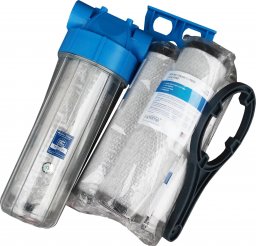 Korpus z przezroczystym kloszem i odpowietrznikiem, pokryty od wewnątrz powłoką antybakteryjną. W zestawie także stopka do przykręcenia filtra do ściany i klucz do korpusu. Filtr posiada atest żywnościowy Polskiego Zakładu Higieny.
