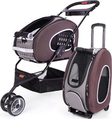 To wszystko powoduje, że w połączeniu z dwoma roadzajami wózków znajdujących się w komplecie, transporter 5w1 to najlepsze rozwiązanie dla hodowców oraz miłośników zwierząt, którzy przemieszczają się z nimi.Dzięki materiałowi - NEOPRAN - transporter jest lekki oraz bardzo wytrzymały na uszkodzenia mechaniczne, a także łatwy do utrzymania czystości. Posiada bardzo dobrą cyrkulacją powietrza - 360 stopni. Bardzo lekki, wygodny i poręczny. Po rozłożeniu zajmuje minimalną ilość miejsca w bagażu lub schowku. Zastosowanie dla zwierząt o wadze do 8kg.Wykonany z wysokiej jakości materiału - NEOPRAN. Jest bardzo lekki, co jest ogromną zaletą w przypadku przenoszenia zwierząt na większe odległości. Produkt opatentowany.Dzięki zastosowaniu wysokiej klasy materiału, czyszczenie jest bardzo łatwe i wygodne, a przy tym nie niszczy transportera. Wystarczy zastosować normalne płyny odkażające lub specjalne płyny do zastosowań dla zwierząt, likwidujące mocz i nieprzyjemne zapachy. Polecam także używanie jednorazowych podkładów dla zwierząt, które wchłaniają mocz na podobnej zasadzie jak pieluchy, które bez problemu można nałożyć na dolną pokrywę transportera.Kolor: brown / brązowy.