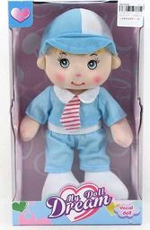 Szmaciana lalka o wysokości 26cm, zapakowana w pudełko.