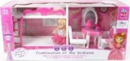 Zestaw zawierający meble do sypialni oraz salonu. W zestawie laleczka.