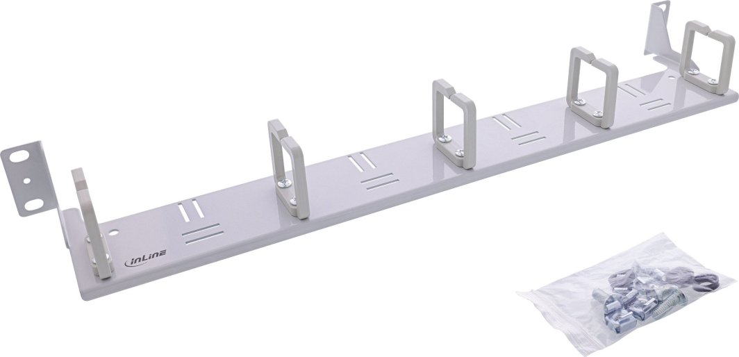 InLine® 19" Kabelführungspanel, 5 Kunststoffbügel horizontal, RAL 7035, grau