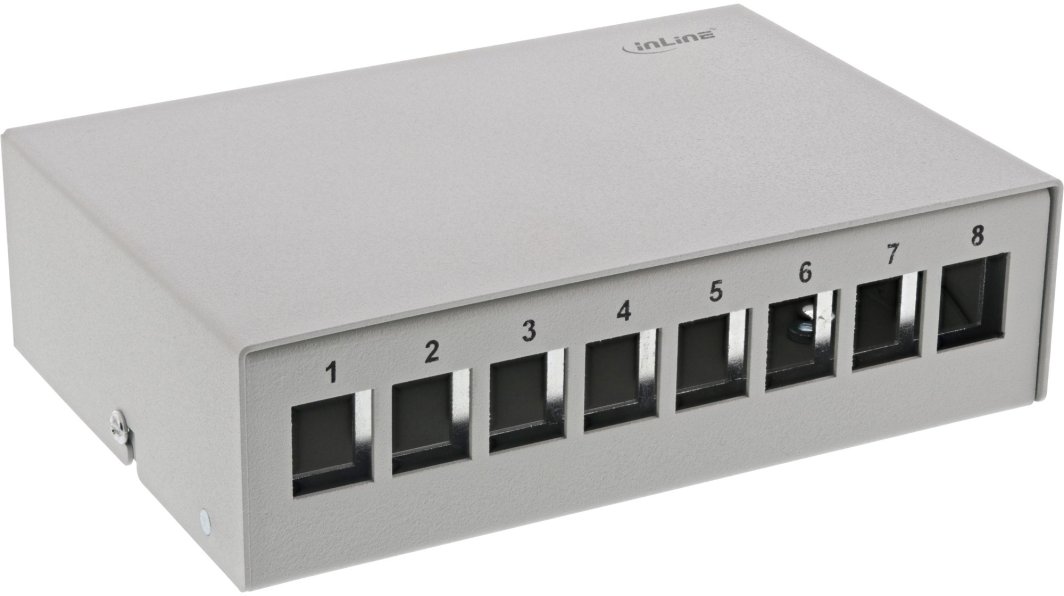 InLine InLine® Desktop Consolidation Point Box 8x Keystone RJ45, metal, light grey RAL7035