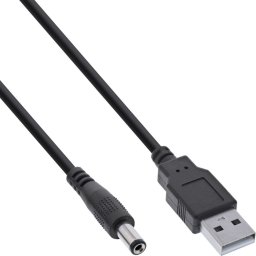 InLine InLine® USB DC power adapter cable, USB A male plug to DC plug 5.5x2.50mm, black, 1m