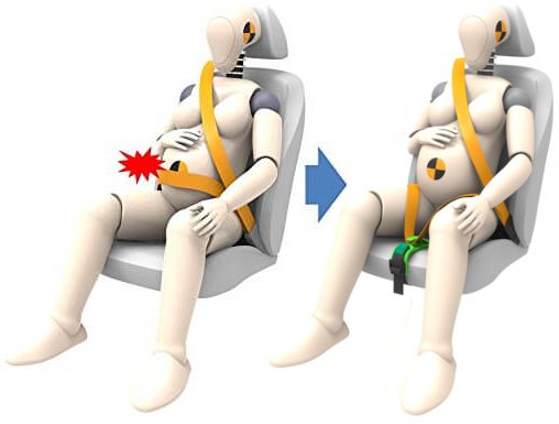 Odpowiada za poprowadzenie biodrowego pasa bezpieczeństwa w taki sposób, aby nie przebiegał on przez brzuch kobiety w ciąży. Eliminuje niebezpieczeństwo zbyt dużego ucisku pasa bezpieczeństwa na brzuch kobiety ciężarnej, podczas nagłego hamowania lub kolizji drogowej. Zastosowanie adaptera zmniejsza ryzyko obrażeń nienarodzonego dziecka, jeśli dojdzie do wypadku samochodowego.