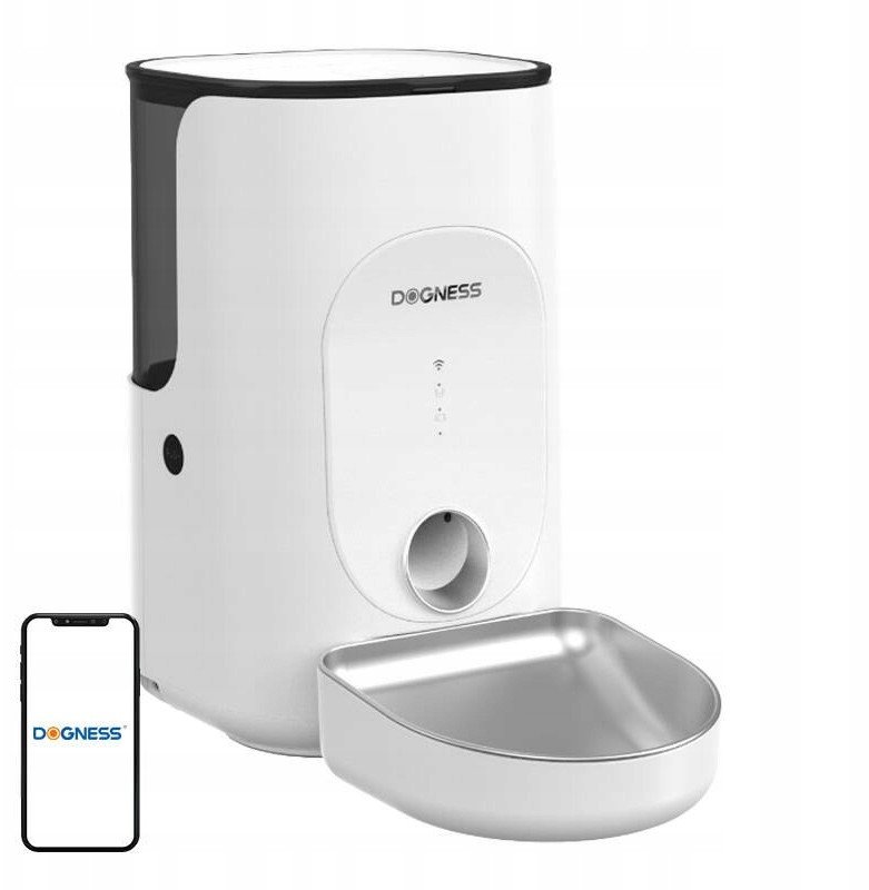 Inteligentny dozownik karmy Dogness F16 WiFi 5G 4L z miską ze stali nierdzewnej (biały)