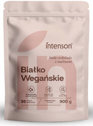 INTENSON_Białko Wegańskie suplement diety Biała Czekolada z Malinami 900g