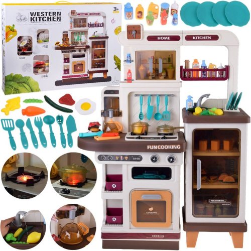 Interaktywna brązowa kuchnia dla dzieci+efekty: światło dźwięk para ZA5765