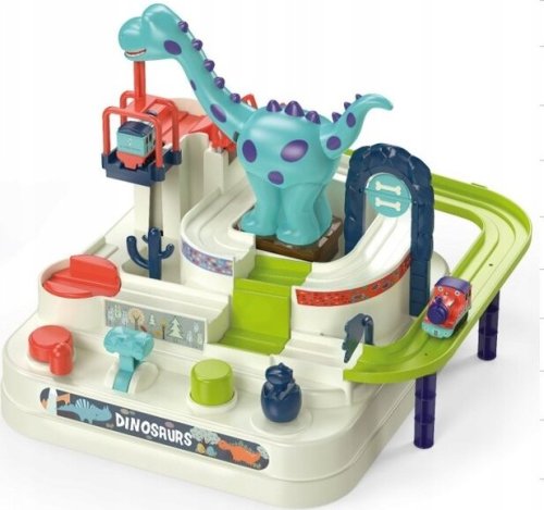 Interaktywny Tor Przeszkód + Pojazdy, Zjazd Samochodowy DINOZAUR to niezwykła zabawka, która łączy naukę z radosną zabawą. Kolorowy tor przeszkód przyciąga wzrok dzieci, oferując im ekscytującą przygodę w towarzystwie dinozaurów, co sprawia, że zabawa staje się jeszcze bardziej fascynująca.