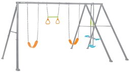Nowe huśtawki wykorzystują potencjał stali ocynkowanej o średnicy rurki 6 cm dla większej wytrzymałości i wytrzymałości konstrukcyjnej. Specjalne haki mocujące huśtawkę do podłoża zagwarantują stabilność i bezpieczeństwo.
