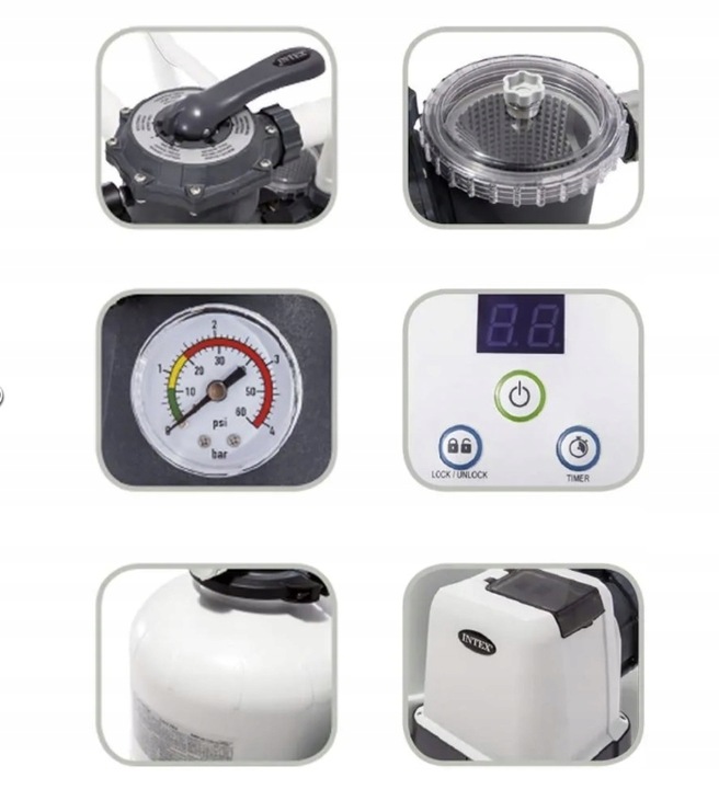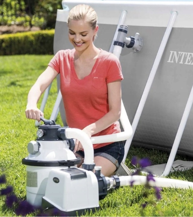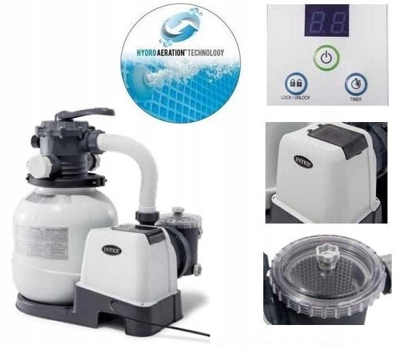Filtracja piaskowa Krystal Clear INTEX to wysoce skuteczny i bezpieczny dla środowiska sposób utrzymania czystej wody w basenie. Jest to bardziej opłacalne rozwiązanie niż tradycyjna pompa filtrująca, ponieważ do oczyszczania wody wykorzystuje piasek krzemionkowy zamiast papierowego wkładu filtracyjnego, podczas gdy wkłady tradycyjne należy wymieniać co 2 tygodnie, piasek krzemionkowy wystarcza na 3 lata. Piasek wyłapuje brud i zanieczyszczenia, a zbiornik filtra wstępnego filtruje większe rzeczy, zapewniając czystą wodę przez cały sezon.