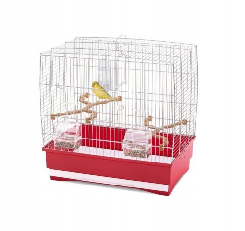Klatka Irene 2 ma wymiary 45 x 27 x 43 cm, co czyni ją idealnym wyborem do mniejszych przestrzeni. Czerwony kolor nadaje jej charakteru i sprawia, że jest widoczna w każdym pomieszczeniu.