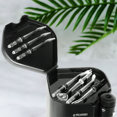 Z irygatora Evorei Boost 3 korzystaj jeśli: chcesz zadbać o odpowiednią higienę jamy ustnej, Twoje dziąsła krwawią przy nitkowaniu, masz ciasno ułożone zęby, nosisz aparat ortodontyczny lub masz częściową protezę. W magnetycznej rącze irygatora Evorei Boost 3 znajduje się 10-stopniowa regulacja ciśnienia wody, a także obrotowa głowica 360°. Dzięki temu możesz ustawić kierunek i moc ciśnienia wody dokładnie tak, jak lubisz.