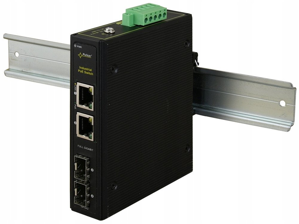 Switch przemysłowy ISFG42 od Pulsara to nowoczesne urządzenie sieciowe, które świetnie sprawdzi się w zasilaniu kamer IP oraz innych sprzętów korzystających z technologii PoE (Power over Ethernet). Wyposażony w 4 porty, w tym 2 porty PoE oraz 2 porty SFP, oferuje dużą elastyczność w łączeniu z innymi elementami sieci. Jego konstrukcja umożliwia montaż na szynie DIN, co czyni go idealnym rozwiązaniem do zastosowań przemysłowych.