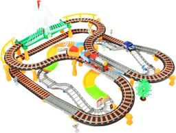 Tor 2w1 to dwupoziomowa kolejka z wiaduktem/mostem i tor wyścigowy - zestaw aż 192 elementów! Zarówno lokomotywa, jak i auto poruszają się same (pojazdy posiadają włącznik/wyłącznik) po osobnych torach.