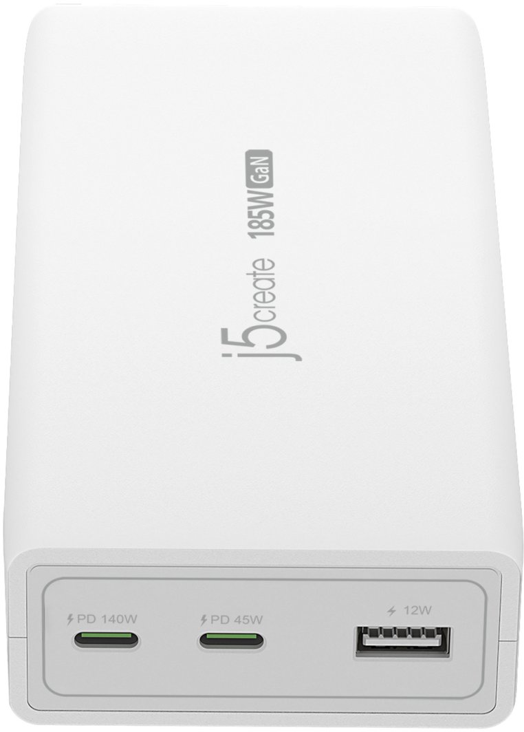 Ładowarka j5create JUP37185W-EN oferuje maksymalną moc wyjściową wynoszącą 185W, co umożliwia szybkie i efektywne ładowanie nawet najbardziej wymagających urządzeń. Porty USB-C zapewniają moc wyjściową odpowiednio 140W i 45W, a port USB Type-A 12W, co gwarantuje wszechstronność w ładowaniu.