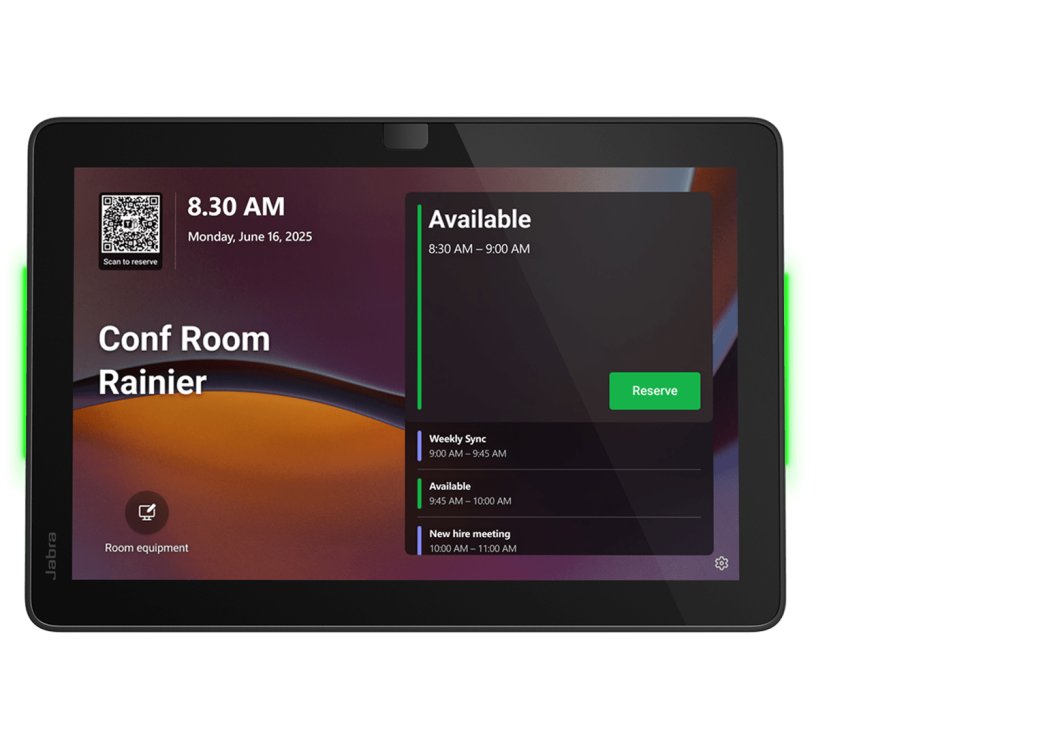 Jabra Scheduler UC umożliwia rezerwację sal zarówno z wyprzedzeniem, jak i na żądanie. Dzięki przejrzystemu wyświetlaczowi oraz bocznym paskom świetlnym, status sali jest widoczny z dużej odległości, co ułatwia organizację spotkań.