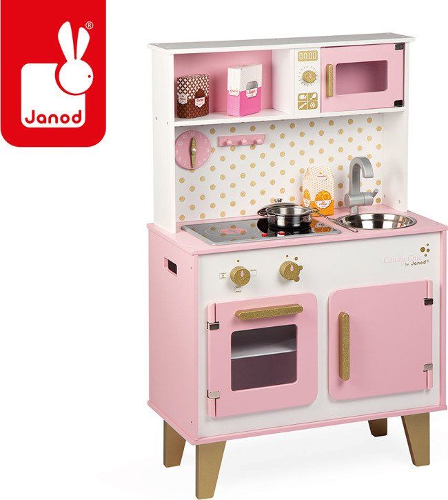 Janod Duża kuchnia drewniana z dźwiękiem i 6 akcesoriami Candy Chic (J06554)