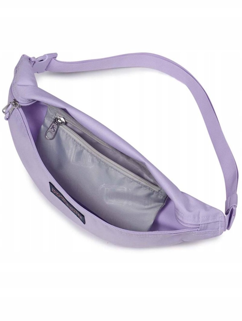 JanSport Swing Waistpack wyróżnia się prostotą oraz elegancją. Fioletowy kolor w odcieniu pastel lilac dodaje mu świeżości, a brak wzorów sprawia, że torba jest uniwersalna i łatwa do zestawienia z różnorodnymi stylizacjami. To idealny dodatek dla osób, które preferują praktyczne rozwiązania bez zbędnych ozdób.