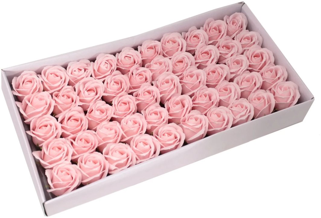 Jasnoróżowe Mydlane Róże - Komplet 50 sztuk w Pudełku