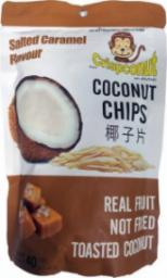 Chipsy kokosowe Crispconut Salted Carmel to zdrowsza alternatywa przekąsek. Chipsy są wytwarzane z kopry (miąższ/mięso orzecha kokosowego), która jest krojona, a następnie pieczona razem z cukrem i solą. Chipsy są odpowiednio pakowane, aby zachować ich naturalny smak, aromat i chrupkość. Kokos zawiera średniołańcuchowe kwasy tłuszczowe MCT, które są wchłaniane bezpośrednio po spożyciu i dostarczają natychmiastowo energii. Dodatkowo MCT wspomagają działanie bakterii jelitowych, odpowiedzialnych za odporność. Chipsy kokosowe sprawdzą się jako samodzielna przekąska, ale także jako dodatek do lodów, sałatek owocowych, jogurtów i innych dań, jakie przyjdą do głowy.