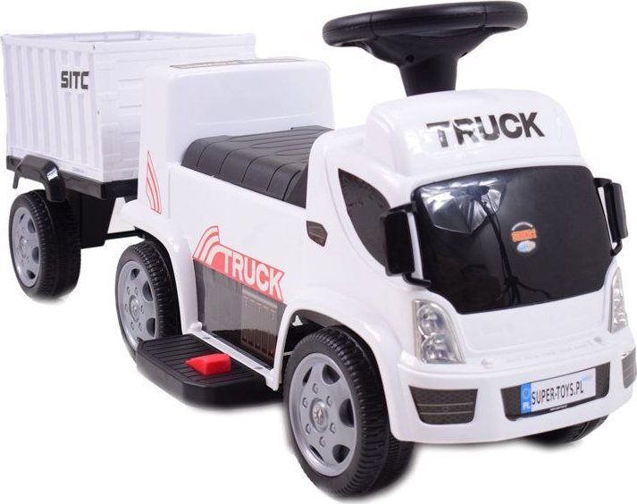 Auto ciężarówka z przyczepą napędzany mocnym silnikiem 30 W z całą pewności zainteresuje młodego wielbiciela ciężarówek.