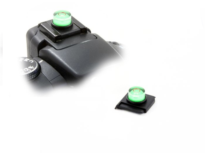 Zaślepka z poziomicą, dzięki miniaturowym rozmiarom, może być zamocowana przy aparacie przez cały czas i nie musimy jej zdejmować jak normalnych poziomic, np. podczas chowania aparatu do torby.