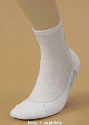 Skarpety z przędzy Prolen SILTEX® są bardzo lekkie, a przy tym kilkakrotnie bardziej wytrzymałe od bawełnianych. Skarpetki są dostosowane do anatomicznego kształtu lewej (L) i prawej (R) stopy nie tylko przez odpowiednie wyprofilowanie frotte, ale i ukształtowanie innego konturu dzianiny wokół palców lewej i prawej stopy. Lycra® w całym wyrobie zapewnia znakomite przyleganie do nogi. Na śródstopiu znajduje się opaska elastyczna zabezpieczająca przed przesuwaniem się skarpetki na stopie. Odpowiednio wyprofilowana dzianina na pięcie (kształt "Y"), doskonale przylega do stopy i stabilizuje ją. Poprzeczne prążki ułatwiają układanie się skarpetki na zgięciu stopy. Komfortu dopełnia płaski miękki szew "Rosso" nad palcami. Zawartość SREBRA w przędzy Prolen SILTEX® sprawia, że skarpetki pełnią rolę dezodorantu.
