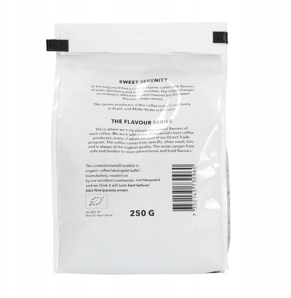 Kawa ziarnista Johan & Nyström Sweet Serenity Filter to idealny wybór dla tych, którzy cenią sobie wysoką jakość oraz niepowtarzalny smak. Pochodząca z najlepszych plantacji w Etiopii i Brazylii, ta kawa 100% Arabica zachwyca nie tylko swoim aromatem, ale także bogactwem smakowych nut, które zadowolą nawet najbardziej wymagających koneserów.