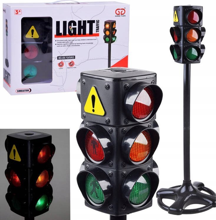 Sygnalizator jest wyposażony w trzy kolorowe światła: czerwone, pomarańczowe i zielone, które sygnalizują różne stany ruchu. Dodatkowo, efekty dźwiękowe wzbogacają zabawę, przyciągając uwagę dzieci i zachęcając je do aktywnego uczestnictwa w nauce zasad bezpieczeństwa na drodze.