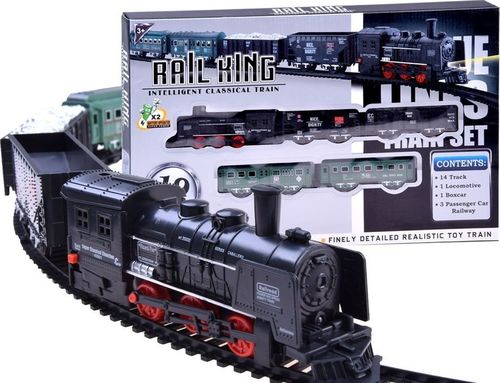Kolejka wykonana jest starannie i z dbałością o szczegóły. Kolejkę napędza klasyczny parowóz, w zestawie znajdziemy również dwa wagony osobowe oraz dwa wagony towarowe. Jeden wagon towarowy jest pusty, dzięki czemu dziecko będzie mogło nim przewozić swoje drobiazgi. Podczas jazdy w parowozie działa lampka oświetlająca trasę, co uatrakcyjni zabawę. Ten wspaniały model kolejki z wagonami wykonany jest z dużą dokładnością co do szczegółów. Z pewnością ucieszy to każdego początkującego fana modeli kolejek.