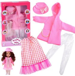 Jokomisiada Różowy zestaw ubranek dla lalki 36-40 cm Sukienka Płaszczyk Kapelusz ZA5839
