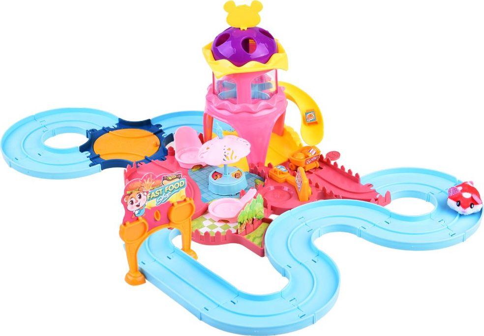 Kolorowy tor dla chomika to mocno rozbudowane centrum zabawy. Zestaw wyposażony w tor dla interaktywnego chomika, bar samoobsługowy typu Fast Food, zjeżdżalnie, trasy do pokonywania odległości. Super zestaw w atrakcyjnych kolorach, z mnogością akcesoriów do zabawy zapewni mnóstwo pozytywnie spędzonego czasu.