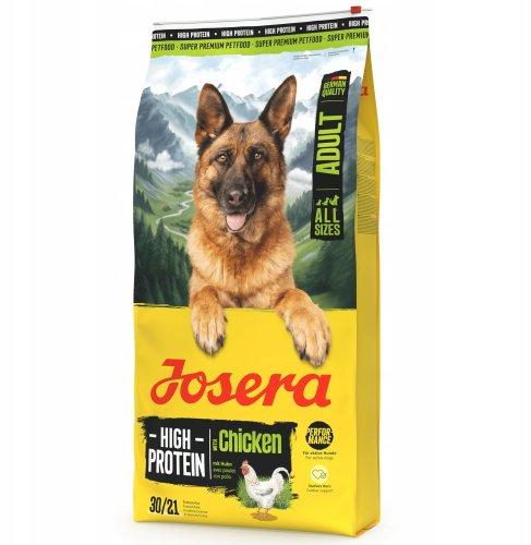 Josera High Protein Chicken to pełnoporcjowa, sucha karma klasy super premium, opracowana z myślą o dorosłych psach wszystkich ras, które mają wyjątkowo wysokie zapotrzebowanie energetyczne. Dzięki wysokiej zawartości białka zwierzęcego (87%) oraz optymalnej proporcji tłuszczu, sprawdzi się idealnie u psów sportowych, pracujących i bardzo aktywnych, a także u suk w ciąży oraz w okresie laktacji.