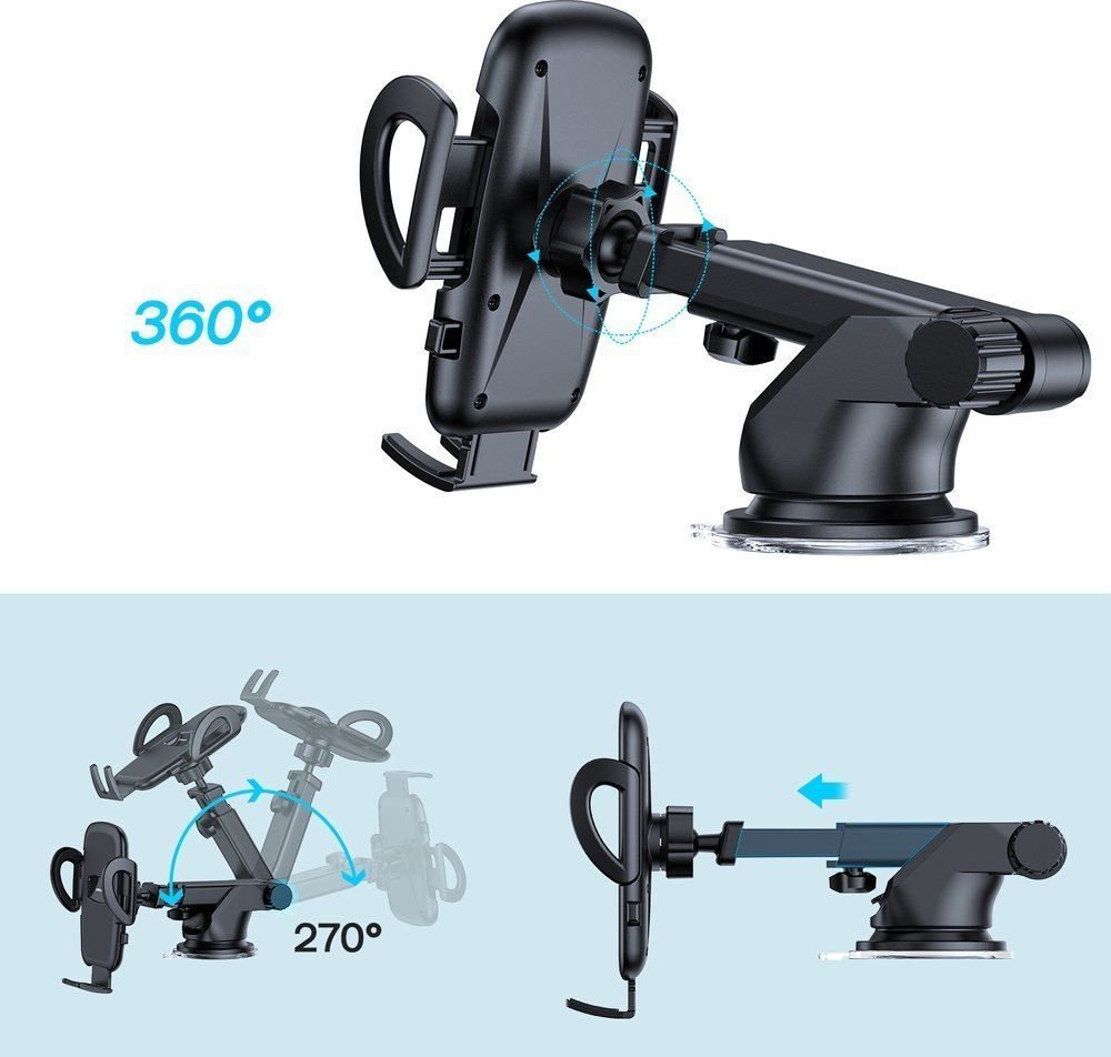 Uchwyt ma możliwość obrotu o 360°, co sprawia, że bez problemu można dopasować go do potrzeb każdego kierowcy. Wystarczy. że delikatnie skierujesz go w dół lub górę, aby komfortowo korzystać z telefonu i dokładnie widzieć całą trasę na nawigacji.