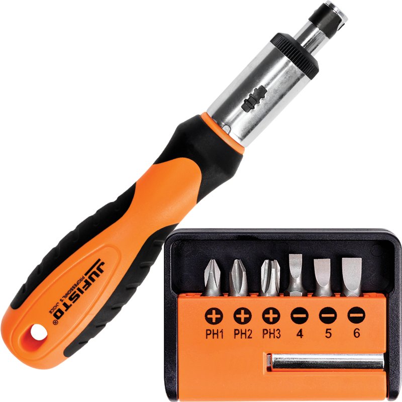 Jufisto JUFISTO Wkrętak Z Grzechotką + 8 Bitów Zestaw Śrubokręt Serwisowy