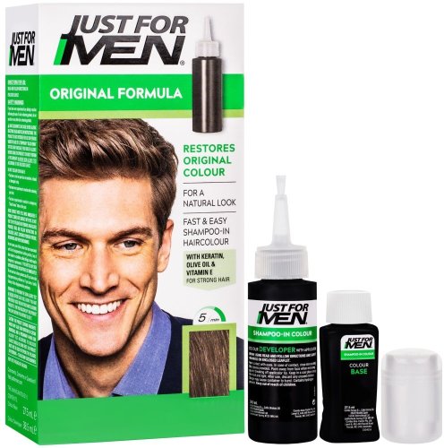 Szampon koloryzujący Just For Men w odcieniu jasny brąz (H25) to doskonałe rozwiązanie dla mężczyzn pragnących skutecznie zatuszować siwe włosy, zachowując naturalny wygląd. Dzięki nowoczesnej formule, produkt ten umożliwia szybkie i łatwe pokrycie siwych pasm, co czyni go idealnym wyborem dla każdego, kto dba o swój wygląd.
