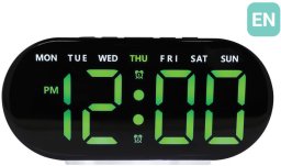 Cyfry o wysokości 5 cm są podświetlane na zielono, co zapewnia doskonałą widoczność zarówno w ciągu dnia, jak i w nocy. Dzięki temu, niezależnie od warunków oświetleniowych, zawsze łatwo sprawdzisz godzinę.