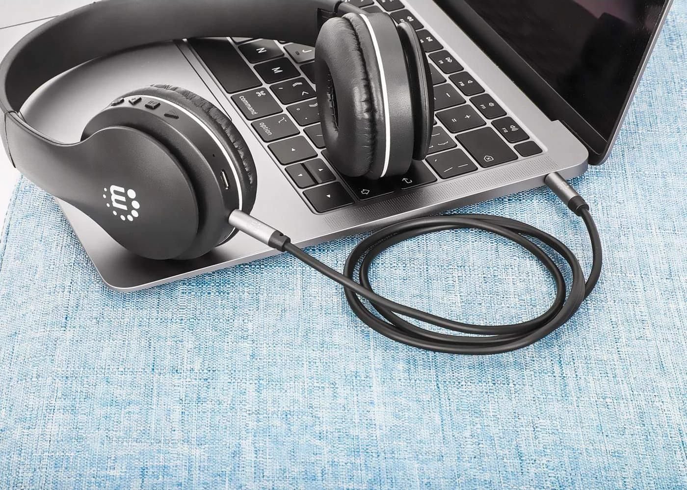 Kabel Manhattan Stereo Audio Aux łączy dowolne dwa urządzenia ze złączami stereo 3,5 mm: telefon z nagłośnieniem samochodowym, laptop z przenośnymi głośnikami, tablet z słuchawkami i nie tylko. Dzięki smukłej konstrukcji nie musisz zdejmować etui z telefonu lub tabletu, aby nawiązać połączenie.