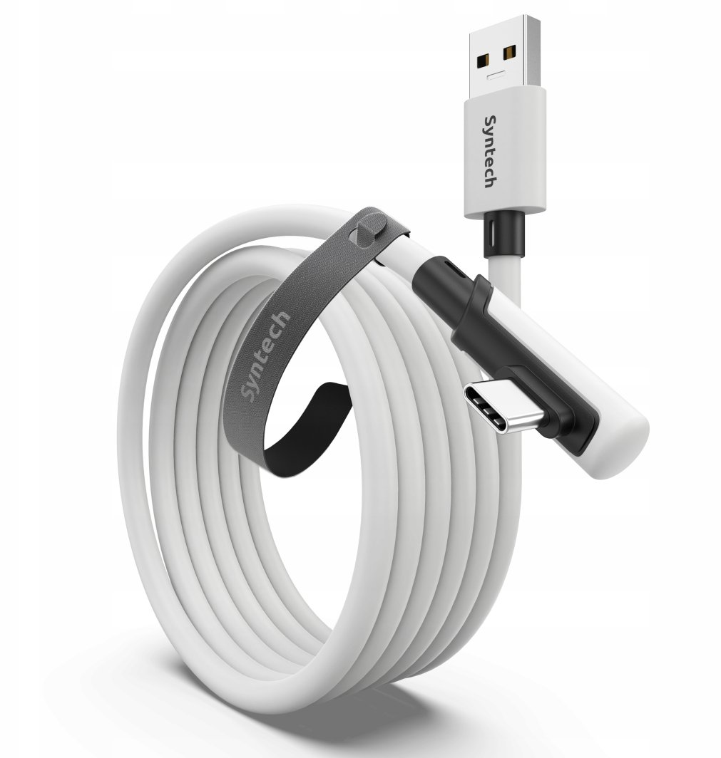 Kabel USB-A na USB-C o długości 3 metrów, stworzony przez firmę Syntech, to znakomite rozwiązanie dla pasjonatów wirtualnej rzeczywistości. Dzięki swojej długości, zapewnia on swobodę ruchu podczas korzystania z aplikacji VR, takich jak PC VR i SteamVR. Jego elegancki, biały kolor sprawia, że doskonale komponuje się z każdym zestawem gamingowym.