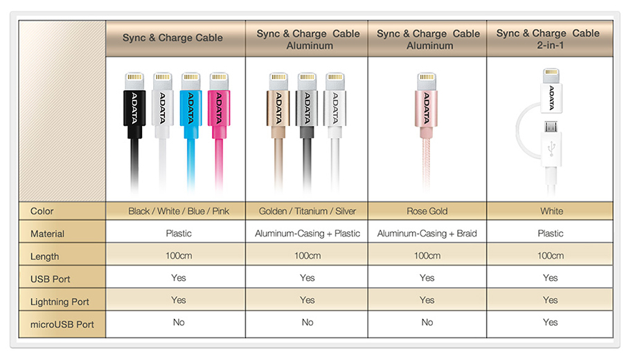 Kabel transferowy i ładujący ADATA z certyfikatem Apple Mfi zapewnia łatwe ładowanie iPhone'a iPada oraz iPoda jak również wymianę danych pomiędzy różnymi urządzeniami z wysoką wydajnością i mobilnością! Mocna, wielowarstwowa konstrukcja oraz cynowana miedź wykorzystana w produkcji sprawiają, że kabel ADATA Sync&Charge Lightning jest trwały i pozwala na szybkie ładowanie nawet przy 2.4 A, jednocześnie zapobiegając niebezpiecznej interferencji elektromagnetycznej. Jeśli posiadasz także urządzenie z systemem Android, możesz użyć wersji 2w1 wyposażonej w port micro USB. Kabel Lightning Sync&Charge jest stylowym, mobilnym akcesorium które jest dostępne w kilku żywych i metalicznych kolorach, by jak najlepiej dopasować się do Twojego osobistego stylu. Do kabla dołączona jest opaska w tym samym kolorze dla łatwiejszego przechowywania. |