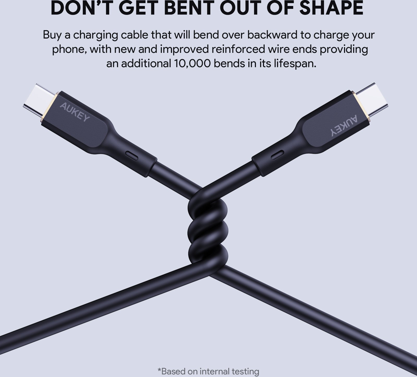 Miękka powłoka z silikonu zapewnia dużą odporność mechaniczną— ponad 10 000 cykli zginania — co przekłada się na długą żywotność kabla. Materiał jest odporny na zarysowania i codzienne zużycie, a konstrukcja zapobiega plątaniu, ułatwiając codzienne korzystanie.