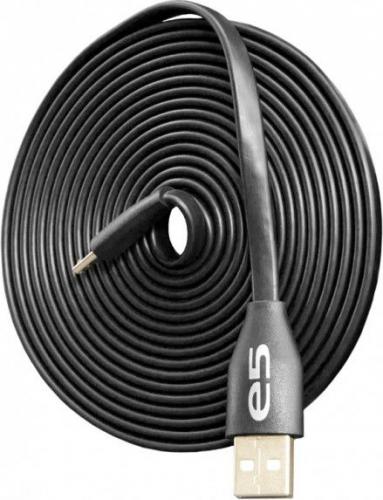 Kabel posiadający złącze USB typu A oraz złącze micro USB, firmy E5, o długości 3m. Przewód koloru czarnego.