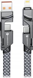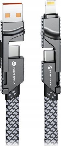 Kabel USB ForCell USB-A + USB-C - USB-C + Lightning 1 m Czarno-srebrny