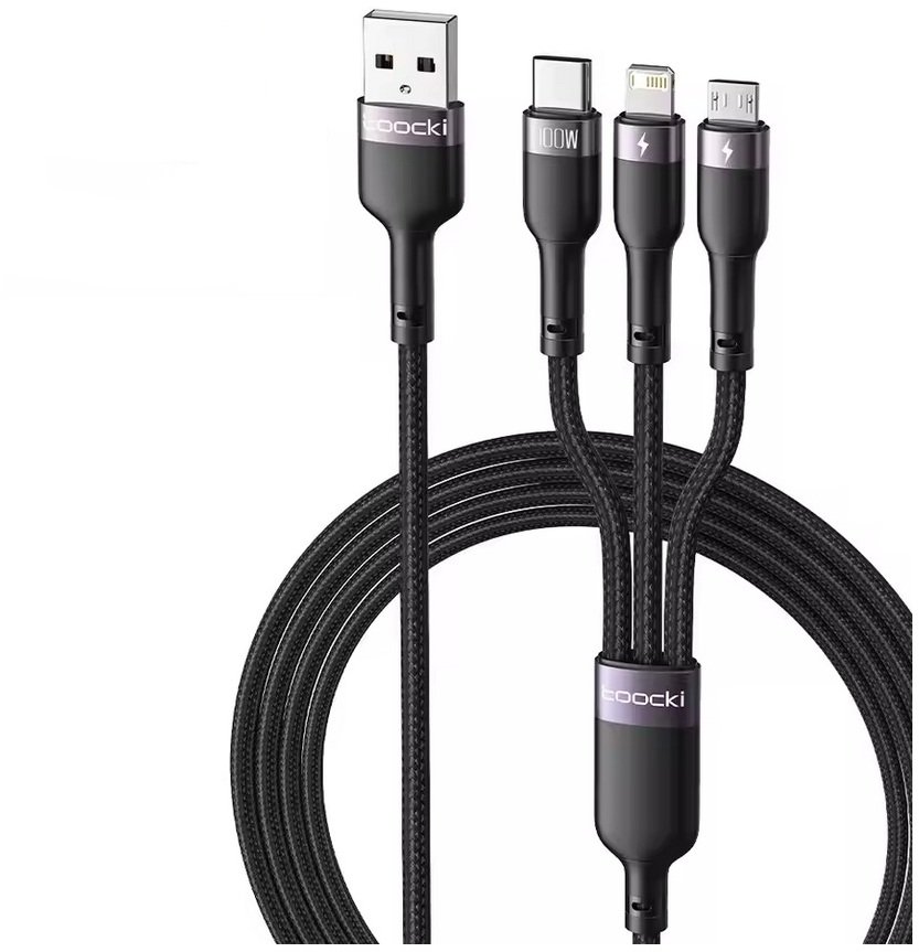 Kabel USB Kaku Kabel Toocki USB 3w1 USB-C, Micro, Lightning 100W, 1.2m, 3 końcówki do ładowania
